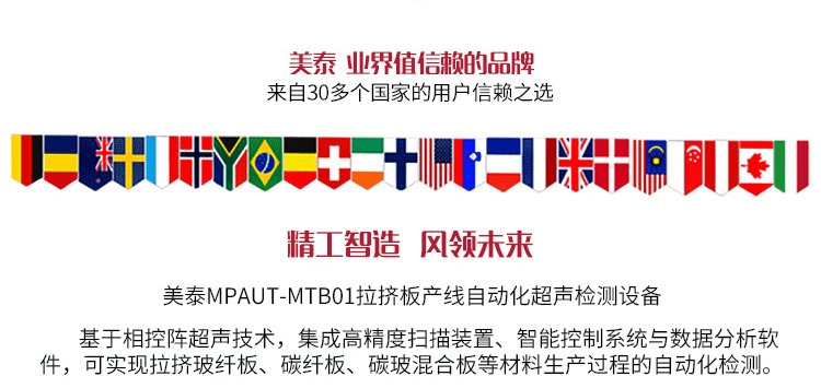 產(chǎn)品概述MPAUT-MTB01 是美泰公司專為風(fēng)電葉片主梁拉擠板材研制的專業(yè)自動化無損檢測裝備。它基于相控陣超聲技術(shù),集成了高精度掃描裝置、智能控制系統(tǒng)與數(shù)據(jù)分析軟件,構(gòu)建起從自動化檢測、精準(zhǔn)成像到數(shù)據(jù)追溯的全流程質(zhì)量保障體系,被廣泛應(yīng)用于拉擠玻纖板、碳纖板、碳?;旌习宓炔牧系纳a(chǎn)過程自動化檢測。