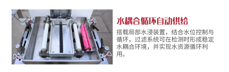 l 水耦合循環(huán)自動供給:搭載局部水浸裝置,結(jié)合水位控制與循環(huán)過濾系統(tǒng),可在檢測時形成穩(wěn)定水耦合環(huán)境并實現(xiàn)水資源循環(huán)利用。
